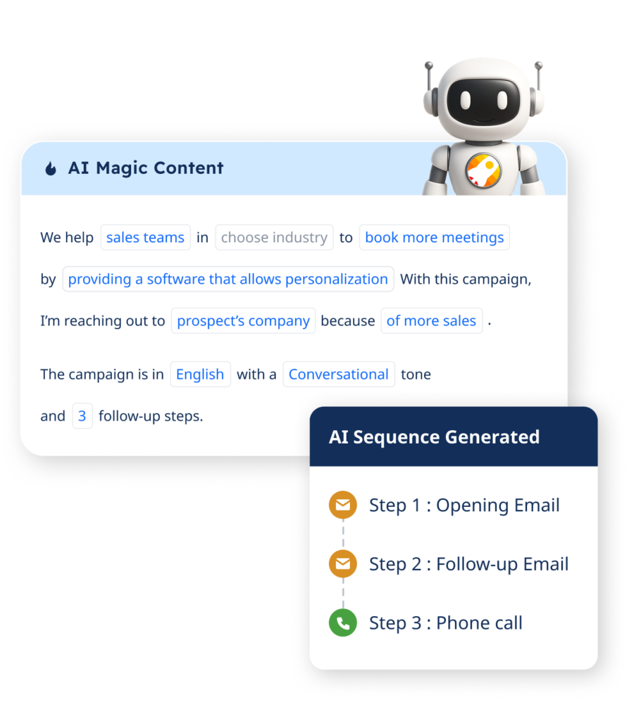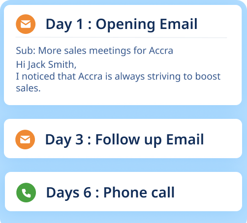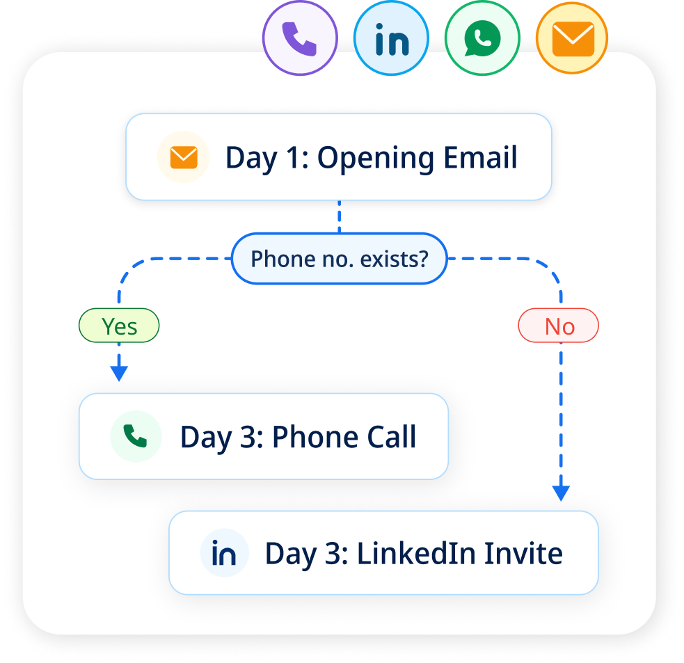 Automate prospects through a seamless journey from email to LinkedIn, calls, & more boosting engagement & conversions