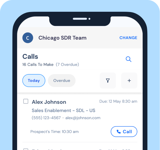 Effortlessly, dial through prospect lists without the need to switch apps to update call or lead status. Uninterrupted calling flow. Learn More