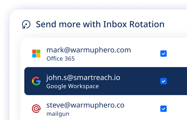 Launch new email accounts through your SmartReach dashboard in minutes. Choose Microsoft 365 or Google—we handle the rest.