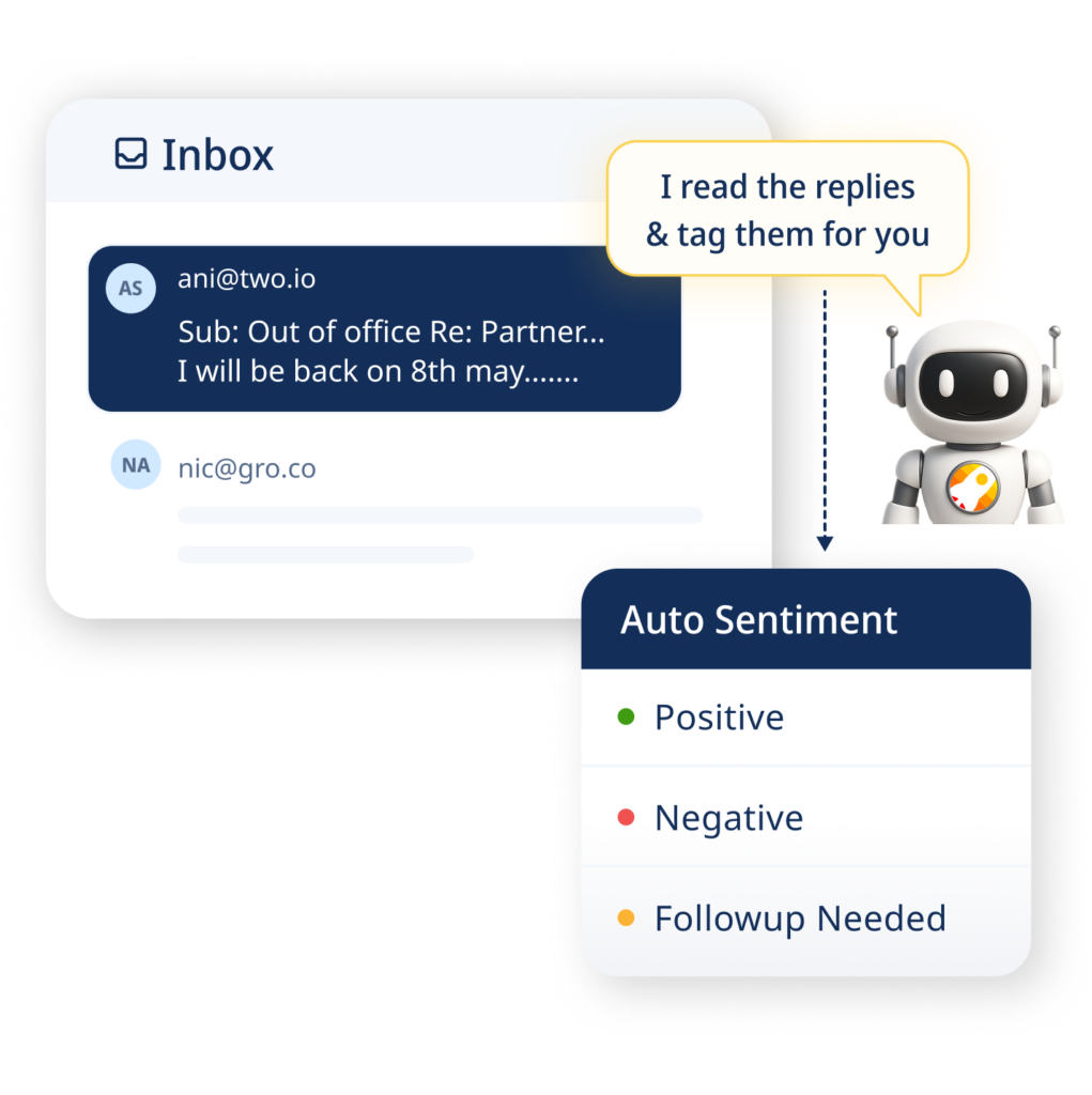 AI categorizes, interprets, and answers emails. Pauses campaigns once meetings are booked.