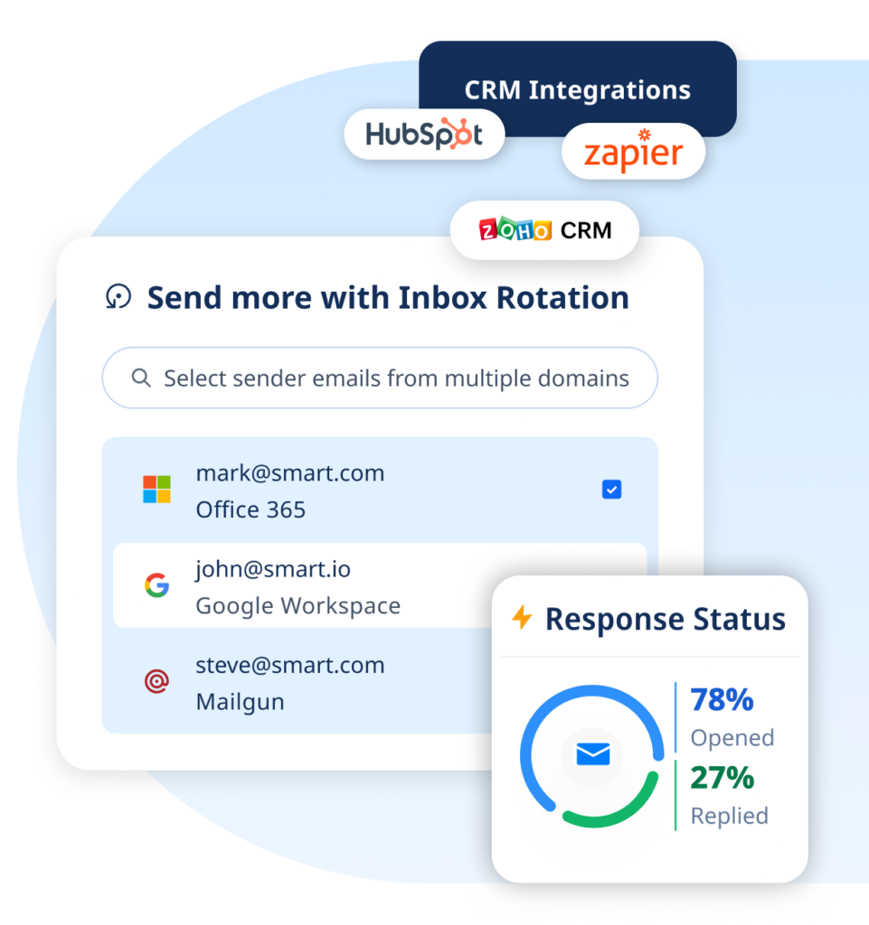 Stop losing deals to poor deliverability and manual processes. Our platform combines unlimited email sending with LinkedIn automation and calling—all optimized for maximum response rates. Get pre-warmed domains, email accounts, and phone numbers instantly in-app to start reaching prospects faster.